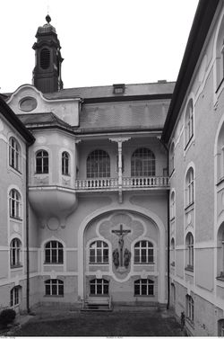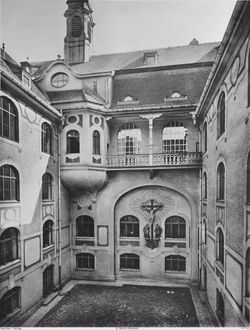 [[Datei:Muemartinspitalhof1899bw.jpg|thumb|250px|Der Innenhof im Jahr 1899.]] | |||
