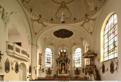 Im 1. Stock des alten Bauabschnitts, Süd-Ost Trakt, erhebt sich eine katholische Kapelle, die Spital-Kirche.