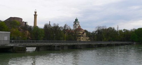 Der Wehrsteg an der Isar verbindet die Praterinsel und die Museumsinsel.
