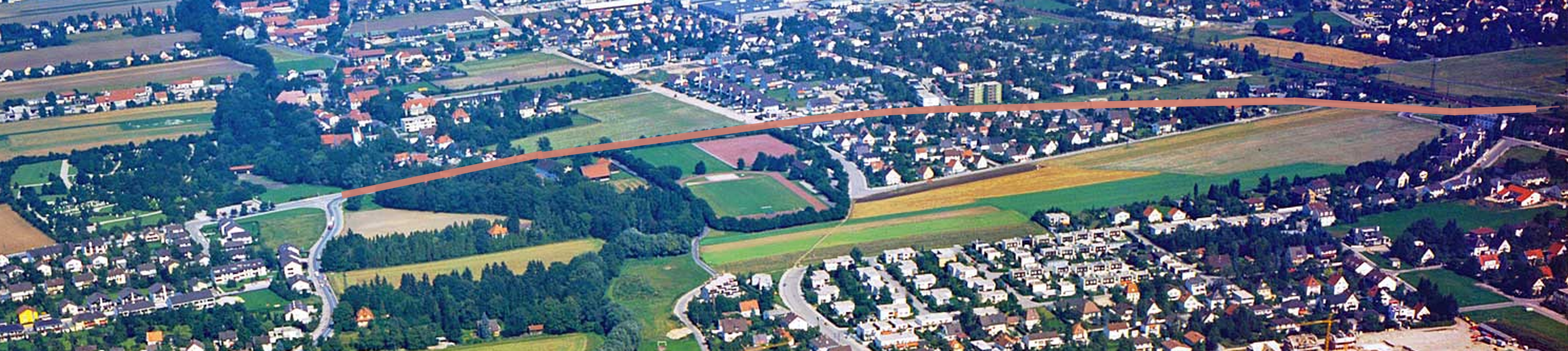 1,97 MB | Fentriss | München, Obermenzing - Untermenzing. Eingezeichnet der vormalige Verlauf der Menzinger Straße bis zum Jahr 1983, beginnend auf der rechten Bildseite mit der Überquerung der Bahnlinie nach Allach. Weiter dem heutigen Verlauf der Von-Kahr-Straß0e folgend bis zur Inselmühle an der Eversbuschstraße und Pippinger Straße am Friedhof Untermenzing auf der linken Bildseite. * Überflugfoto entstanden durch Herrn Schillinger im Jahr 1979 * (Foto: K. Schillinger, 1979) | 1 |