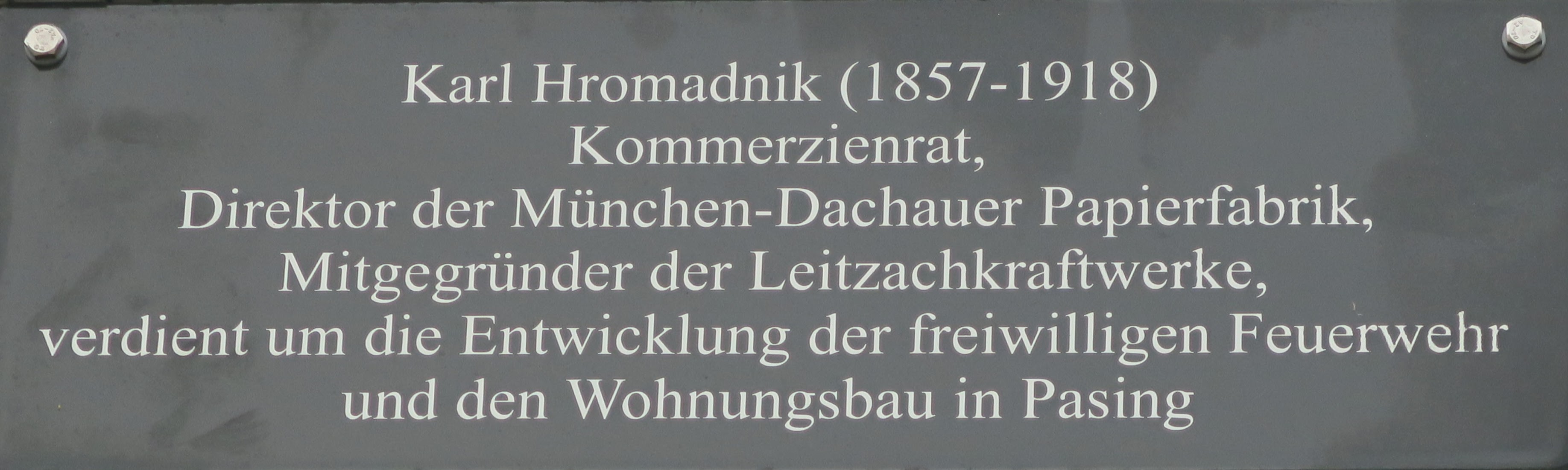 | 15:59, 9. Jan. 2023 | Karl-Hromadnik-Straße.JPG (Datei) | 425 KB | {{Information Bild |Beschreibung = Straßenschild Karl-Hromadnik-Straße |Quelle = Eigenes Werk |Urheber = WuffiWuff2 |Datum = 08.01.2023 |Genehmigung = |Andere Versionen = |Anmerkungen = }} | 1 | |