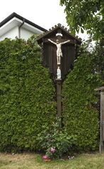 München, Untermenzing, Allach, An der Straßenkreuzung, Straßenrand, der Auenbruggerstraße und Eversbuschstraße steht dieses Wegkreuz.