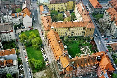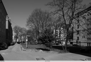 In der Mitte des Areals, wie auf der Fotoansicht zu sehen, wachsen Bäume und Gestrüpp. Noch bis April 1981 stand dort die kleinbürgerliche Bebauung der "Armen Leute", wie sie in Giesing an der Kiesstraße noch heute zu sehen sind. Der Abbruch der Häuser wäre nicht wirklich erforderlich gewesen. Die Gebäude könnten anstelle des nun belanglosen Platzes auch hier Zeugnis vom Aussehen des alten Münchens geben.