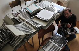 Andreas Bohnenstengel beim Sichten des Negativarchivs