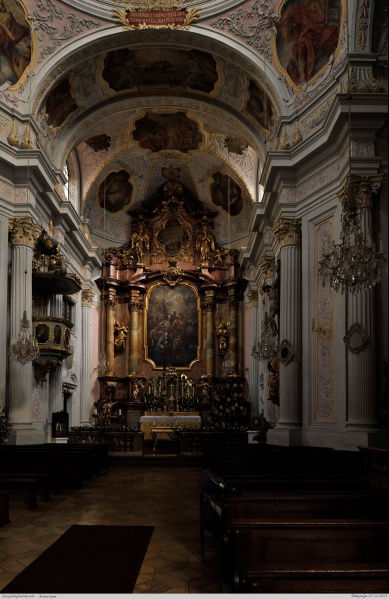 Innenraum der Dreifaltigkeitskirche. Fotografiert am 23.12.2008 für München Wiki. Die Fotografie ist frei von jeglichen Rechten.