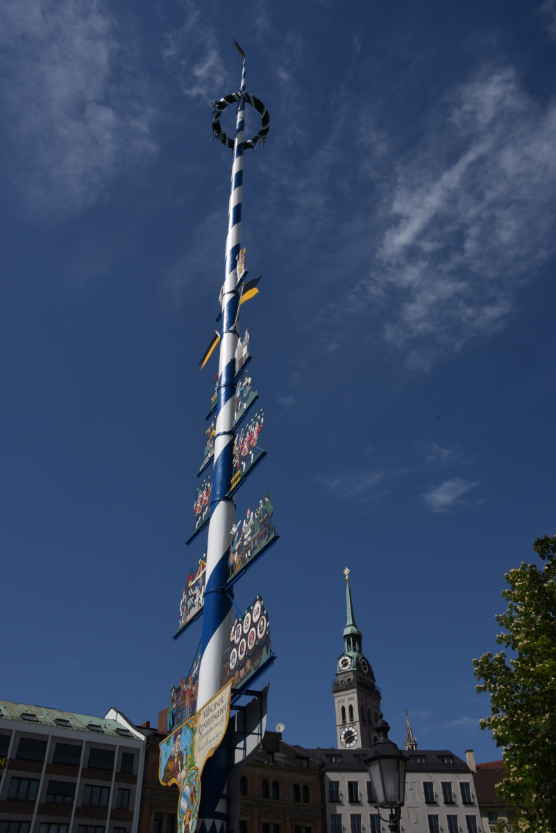 Der Maibaum sollte am 1. Mai nicht fehlen und so wurde schnell der Maibaum am Viktualienmarkt ausgesucht. Alte Tradition in Bayern kann auch der Virus nicht verhindern.
