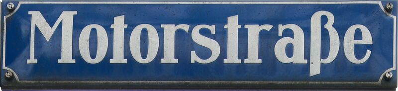 | 12:49, 9. Nov. 2025 | 289 × 74 (21 KB) | Wuschel (Diskussion | Beiträge) | Straßenschild Motorstraße |