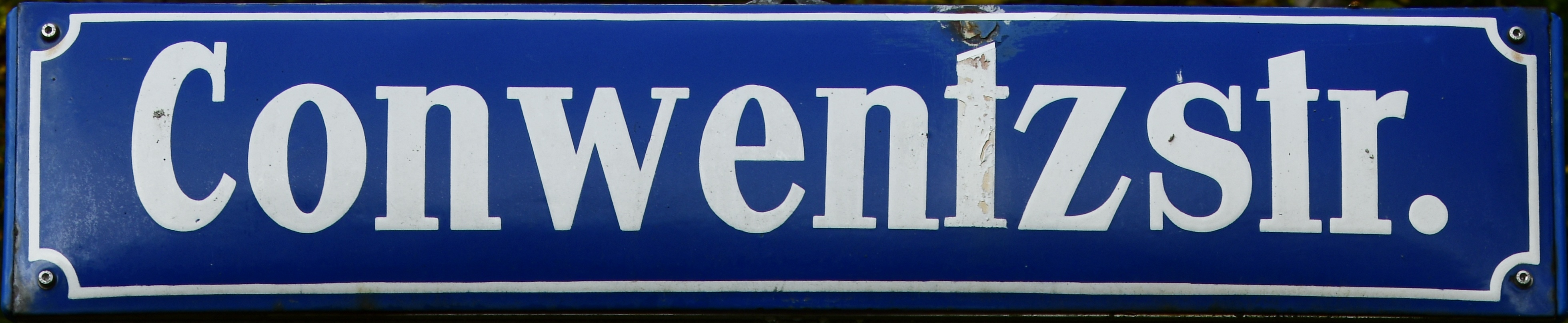 München, Hinterbrühl. Eines der Straßennamenschilder der Conwentzstraße.