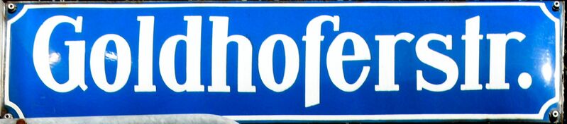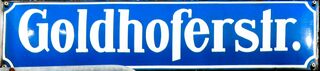 München, Forstenried, eines der Straßennamenschilder der Goldhoferstraße.