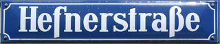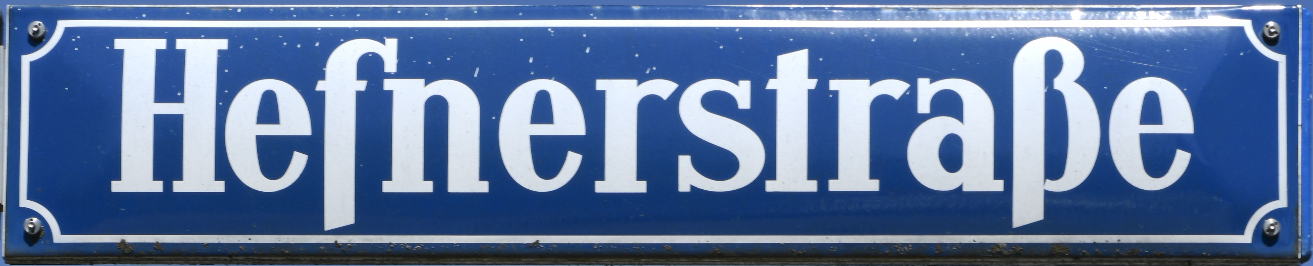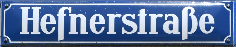 München, eines der Straßennamenschilder der Hefnerstraße. Zustand 2019.