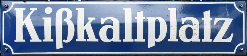 München, eines der Straßennamenschilder für den Kißkaltplatz. Zustand 2020.