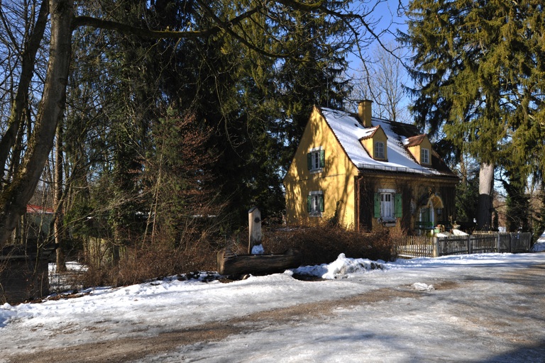 München, Thalkirchen, Zentralländstraße 35. Areal um den Brunnen. Die alte Dame, die das Häuschen bewohnte, ist leider im Jahre 2011 verstorben. Den wunderschönen gepflegten Garten mit den Rosenrabatten wird hoffentlich auch ein möglicher Nachfolger so geschickt und einfach gestalten.