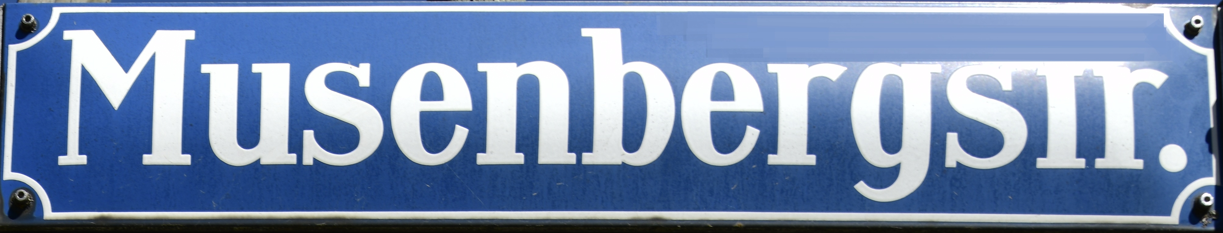 München, Englschalking, Johanneskirchen. Eines der Straßennamenschilder der Musenbergstraße.