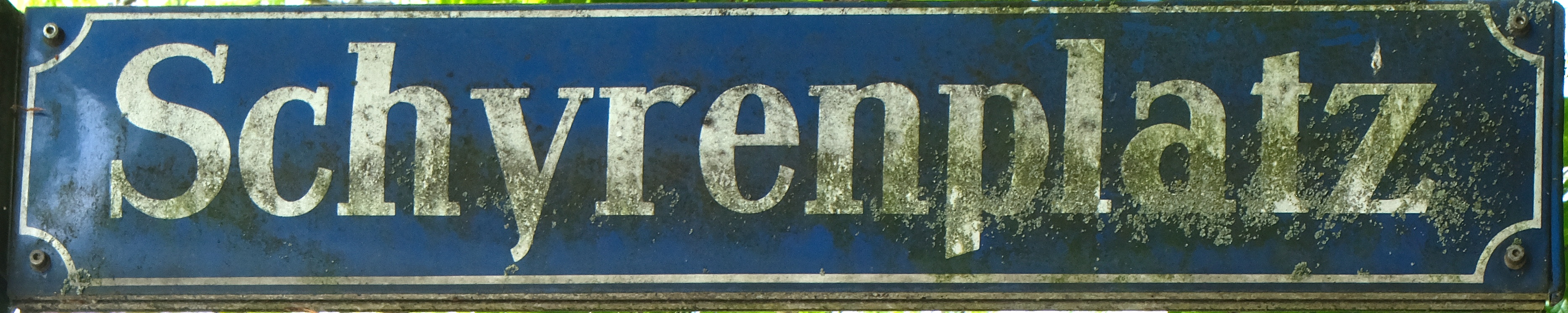 München, Au. Eines der Straßennamenschilder für den Schyrenplatz.