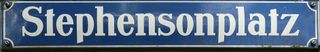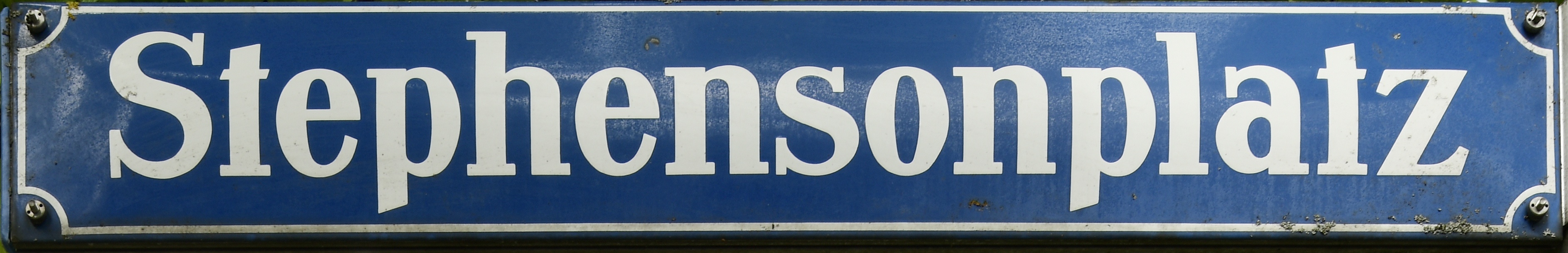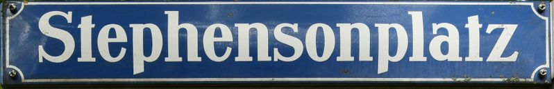 München, Perlach, Bahnhof, einer der Straßennamenschilder des Stephensonplatzes.