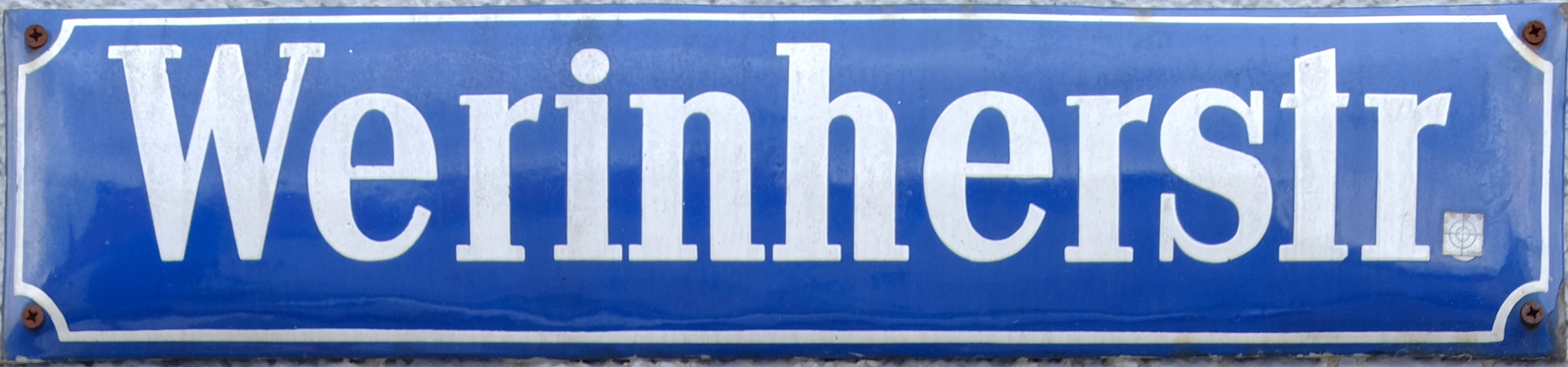 München, Giesing, einer der Straßennanemnschilder dcer Werinherstraße.
