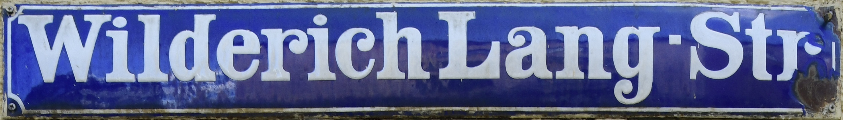 München, Neuhausen, eines der Straßennamenschilder der Wilderich-Lang-Straße. Zustand Januar 2020.