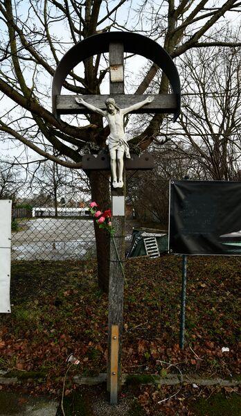 München, Feldmoching, Ortsrand. Wegkreuz entlang der Straße