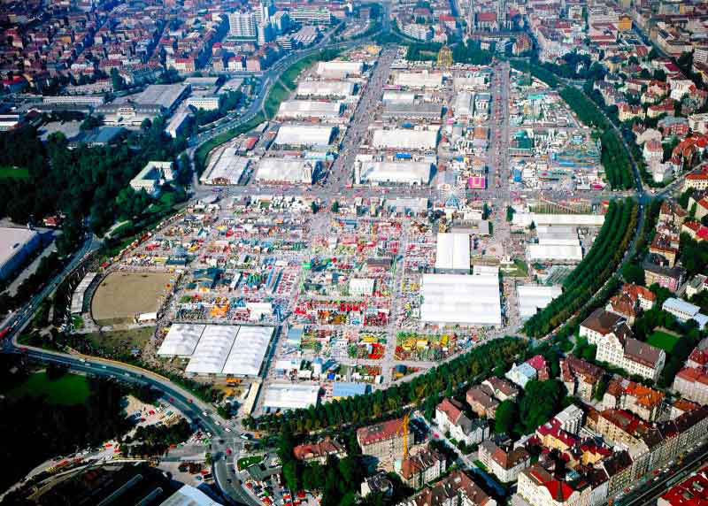 Das Oktoberfest mit Landwirtschaftsfest und einem Wagenrennen zeigt diese Luftbildfotografie. Diese Ansicht mit 20 anderen Motiven aus der Luft über München (Umwelt München) ist als Poster an allen Volksschulen ab 1980 als Schulraumschmuck und Unterrichtsmittel zugleich gehangen.